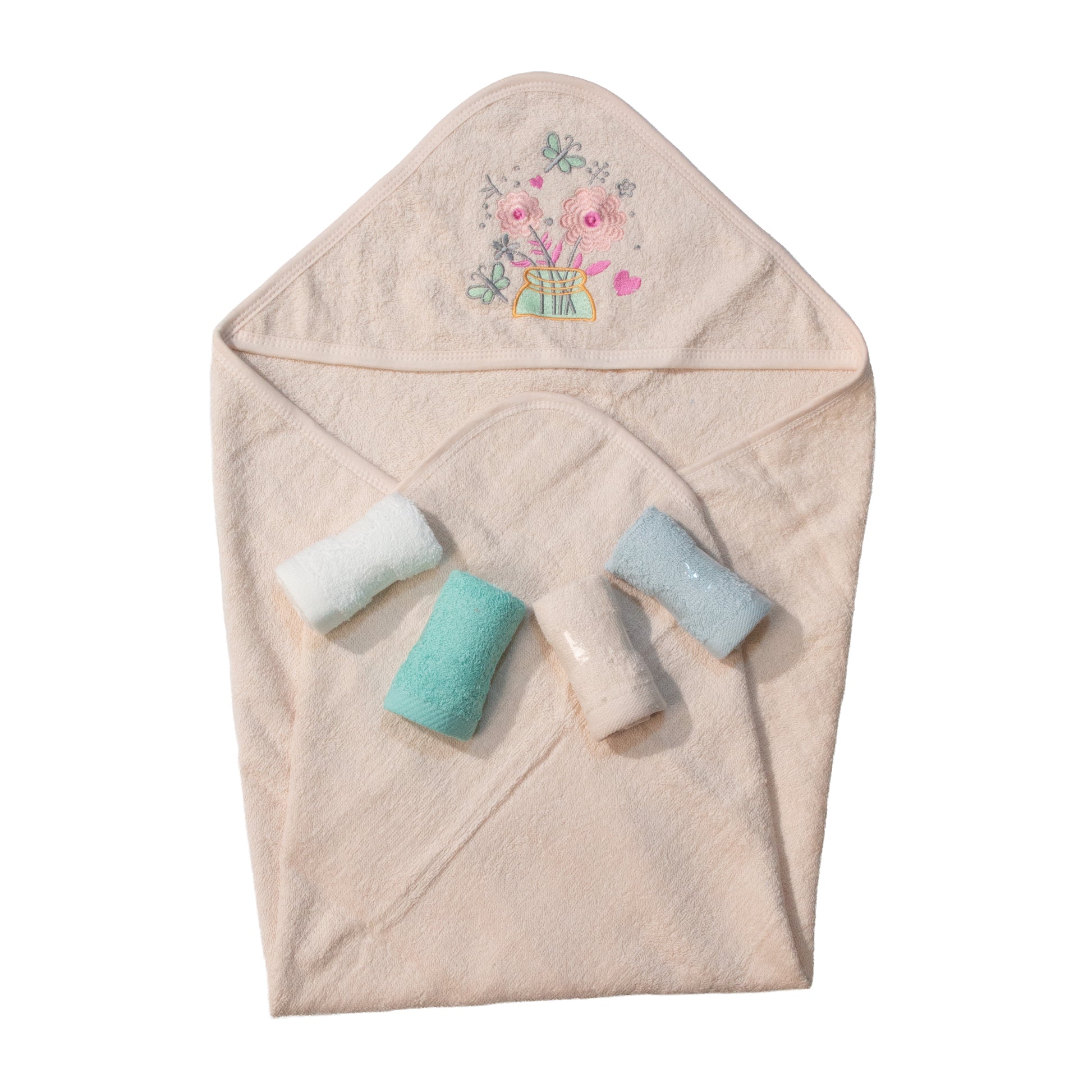 Soft & Absorbent Hooded Towel:The generously sized hooded towel, featuring a lovely embroidered floral and heart design, ensures your baby stays warm and cozy after every wash or swim.